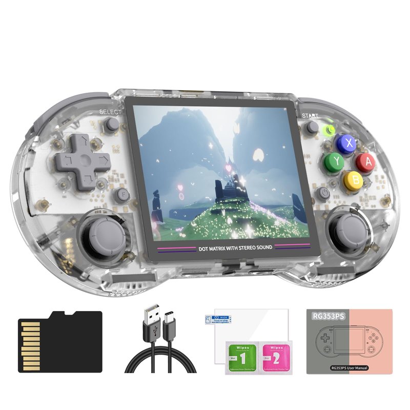 - RG353PS handheld gaming console, available in 3 colors - gray, transparent white, and transparent purple. Featuring a compact 3.5-inch IPS display with full viewing angles and zero distance OCA full fit, our device guarantees high-quality visuals. With a screen resolution of 640x480, you can enjoy your games with impressive clarity. RK3566 Quad-Core 64 bit Cortex-A55, with a main frequency of up to 1.8GHz, providing stunning performance for your gaming needs