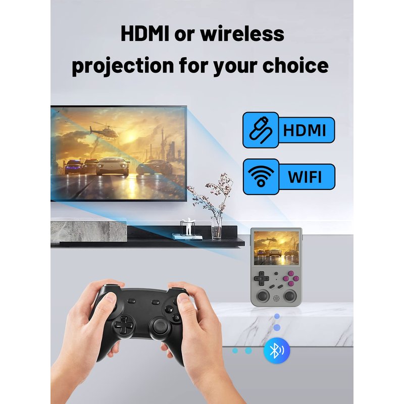 - Additional notable features include a preloaded 64GB TF card containing 4450 classic games, built-in WIFI online fighting and streaming, HDMI output compatibility, a vibrating motor, and customizable settings for energy-saving, display brightness, and other functional properties. The RG353VS handheld gaming console is designed to cater to all your gaming needs, offering a wide array of features to ensure an enjoyable gaming experience in the palm of your hand.