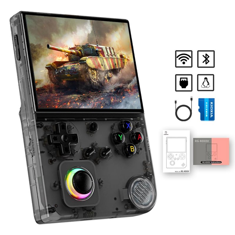 RG40XXV Retro Handheld Game Console with 4-inch IPS Screen 64G TF Card Linux System and 3200mAh Battery Supports 5G WiFi Bluetooth 4.2 Black Translucent