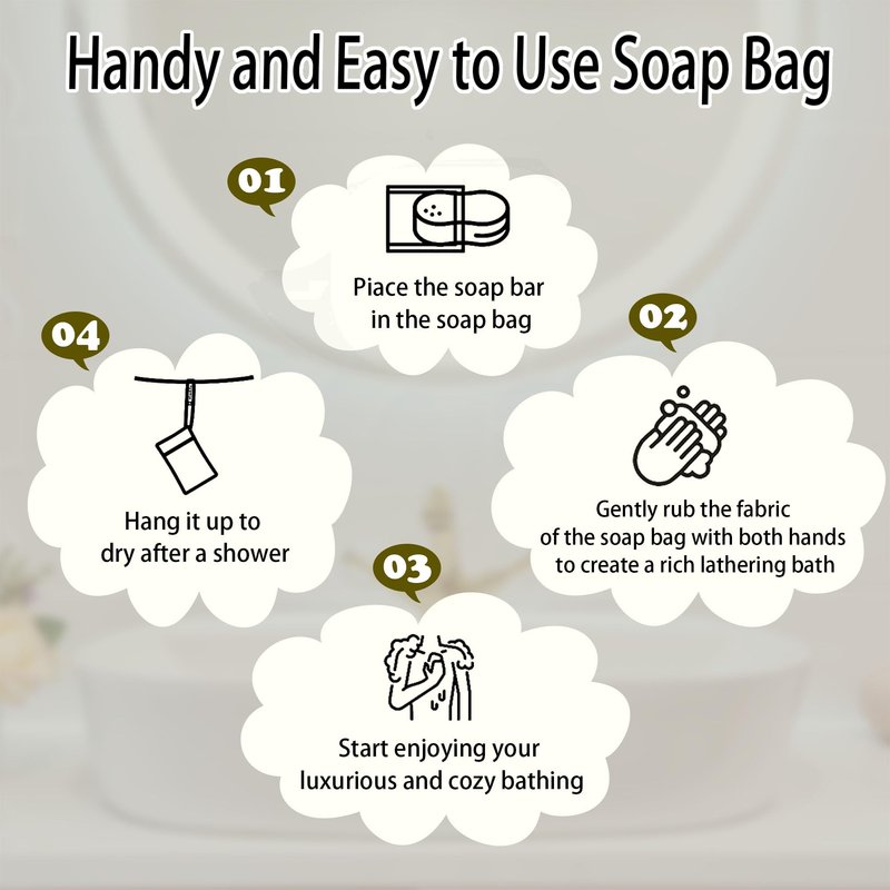 ③ Not only can these soap bags be used in the shower, but they can also be used as travel soap holders or even as a bag for storing small items.