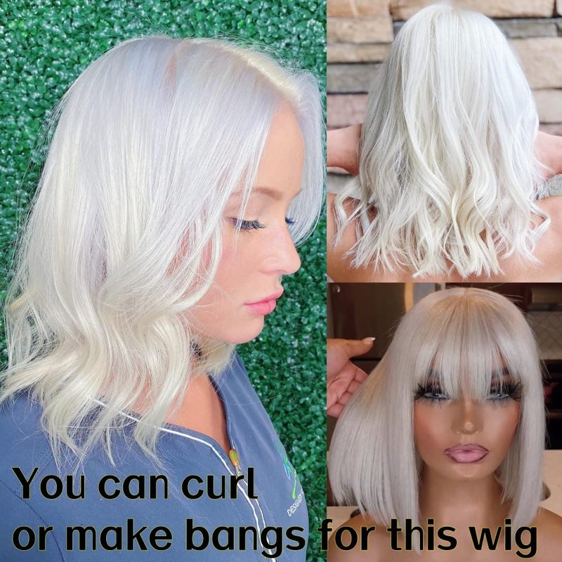 - 🎀Plump Bouncy &charming Platinum Blonde Human Hair Wig: 150% Density ,full hair from the forehead to backward. If you like a fuller and more attractive wig, please choose 150% density .