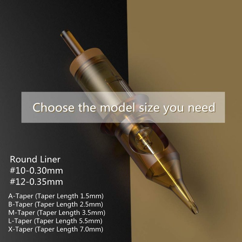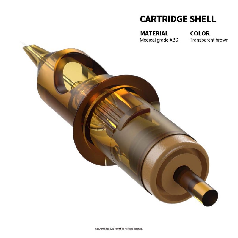 Hollow Round Liner (HRL): Straight Hollow, L-Taper (Taper length 5.5mm). Specially designed with a unique hollow center, holds more inks , and allows for optimal Inkflow. Generates crisp lines, with less trauma on the skin.