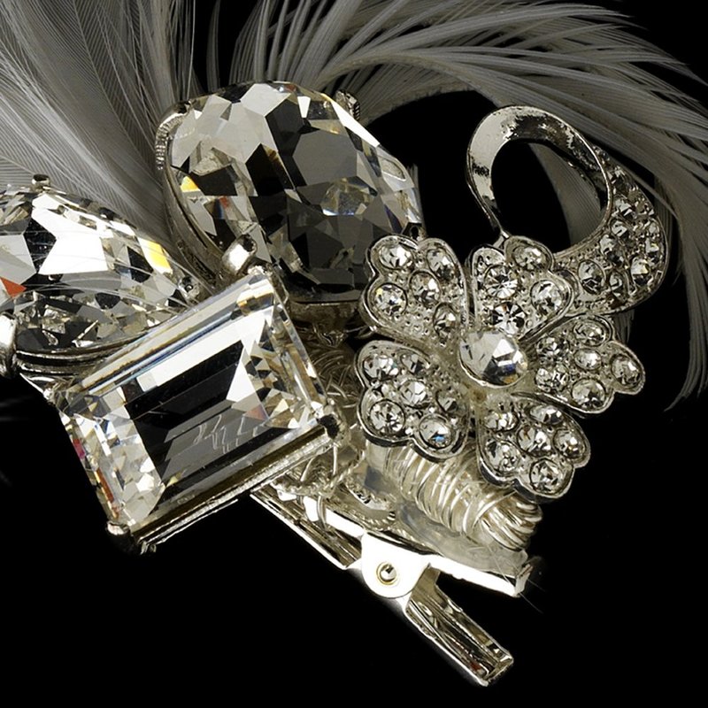 Rhinestone Floral Galore Feather Accent Wedding Bridal Hair Comb Clip Brooch - Ivory