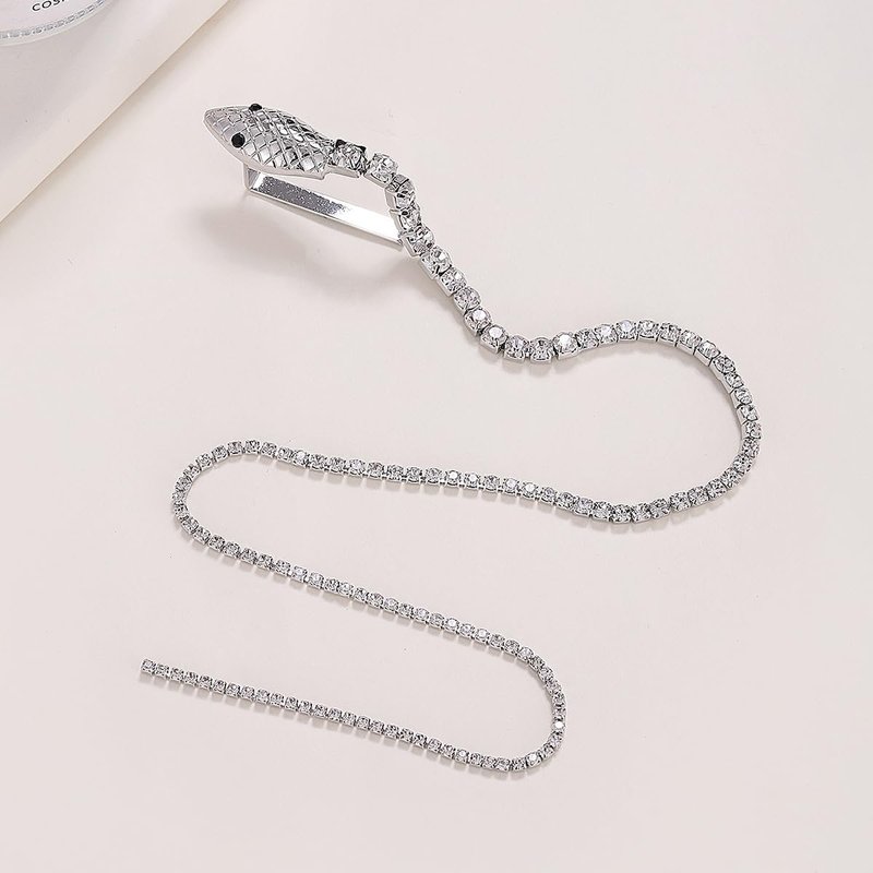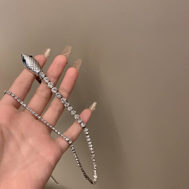 - Funny Design - The decorative hairpin is snake shape, the clip part is snake head charm, the long rhinestone chain like the body of snake. Silver hair chain clips are shinning in the sun. Add more fashionable, eye-catching and beautiful for you