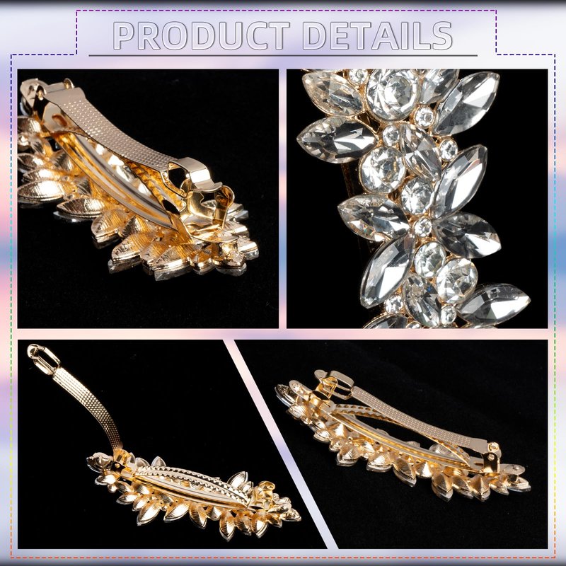 Rhinestones Bridal Hair Clips Crystal Glass Barrette French Wedding Hairpins Hair Accessories for Bride Bridesmaids Flower Girls - Gold