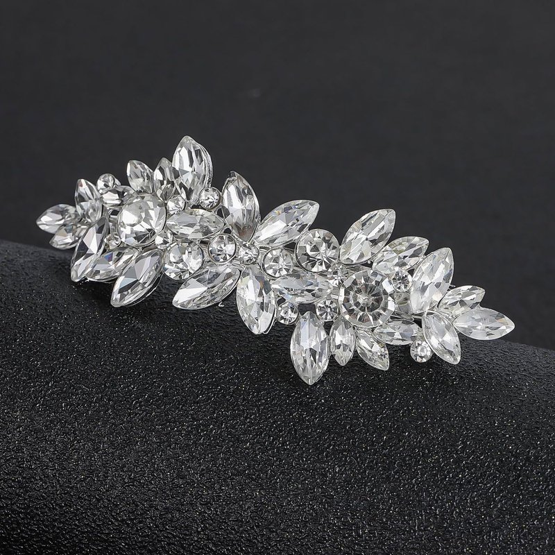 Rhinestones Bridal Hair Clips Crystal Glass Barrette French Wedding Hairpins Hair Accessories for Bride Bridesmaids Flower Girls - Silver