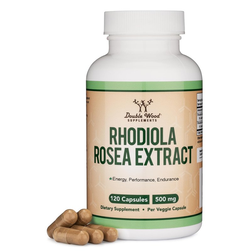 Rhodiola Rosea Supplement 500mg, 120 Vegan Capsules (Third Party Test, Gluten Free, 3% Salidrosides, 1% Rosavins Extract) for Performance, Calming, Motivation by Double Wood