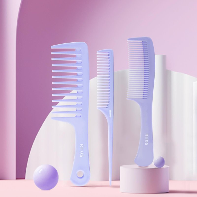 RHOS 3 Pieces Hair Comb Set for Women,Men-Wide Tooth Comb,Fine Tooth Rat Tail Comb,Medium Tooth Comb-Detangling Hair Combs for All Hair Types,Hair Styling Comb Set(Purple)