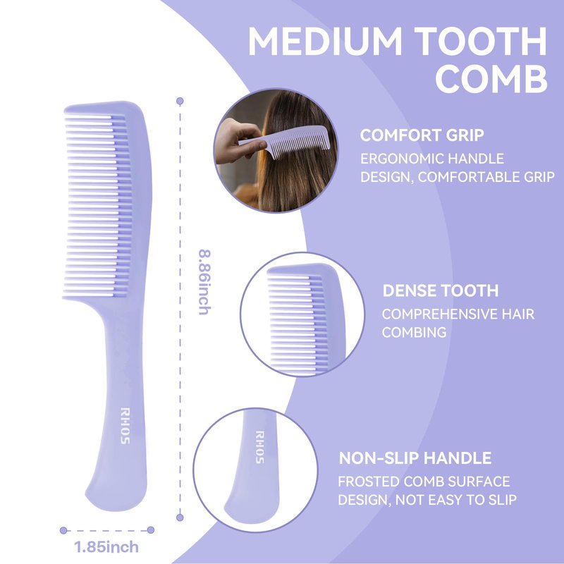 - 【Thoughtful Design】RHOS Hair combs use frosted surface design that is less slippery and easier to hold and manipulate with your hands.The Rounded teeth design not to scratch the scalp when combing hair.Bring you a nice hair styling and hair care experience.