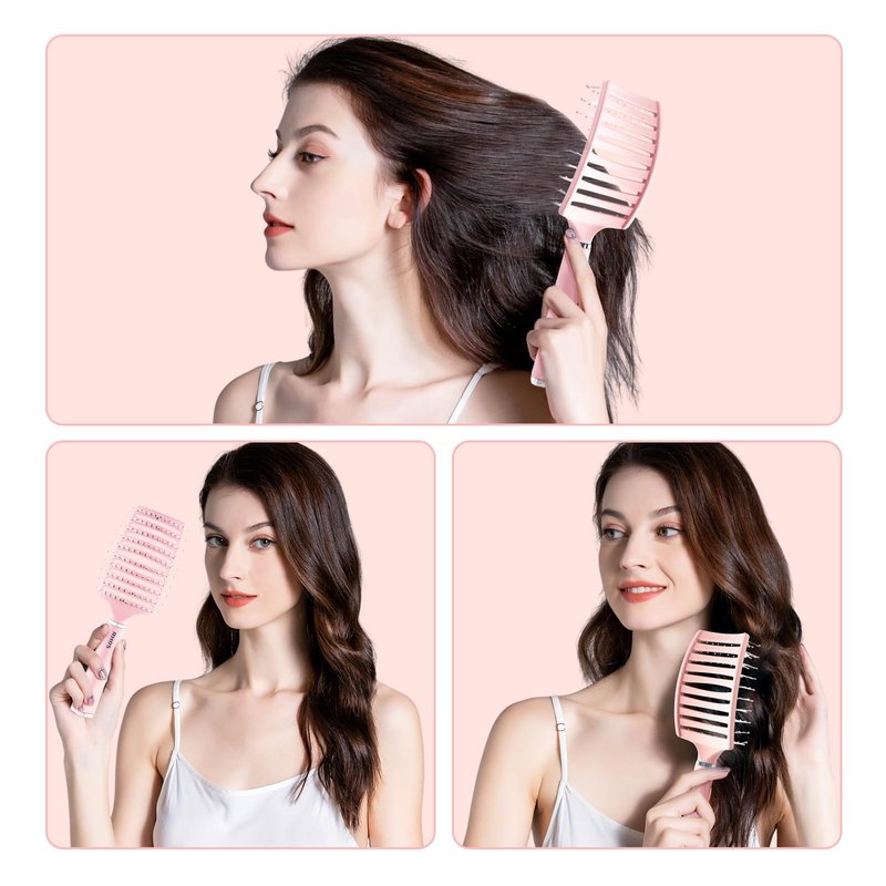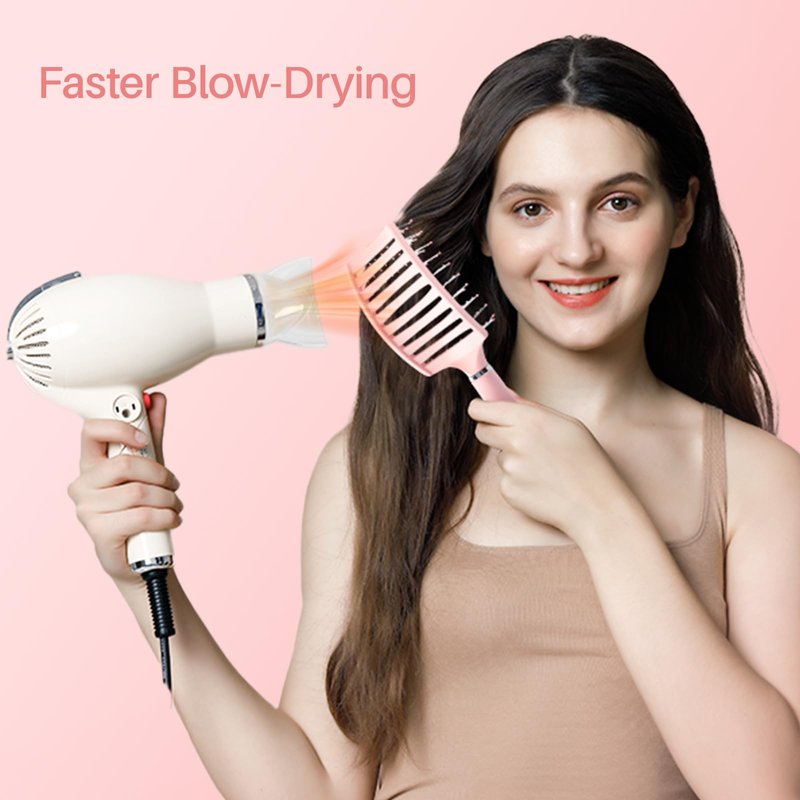 RHOS Curved Vented Hair Brush for Faster Blow Drying/Styling,Paddle Vented Hair Brush for Women&Men-Styling Hair Brush for Curly,Thick,Bangs,Wet and Dry Hair (1 Pack-Pink)