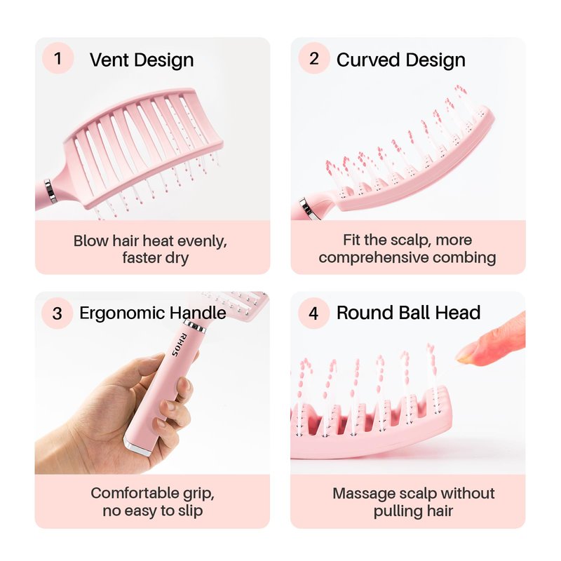 - 【For All Hair Types】RHOS curved vent styling brush is excellent for blow drying and styling.Suitable for straight/curly/wavy/thick hair!It also work good at wet and dry hair.
