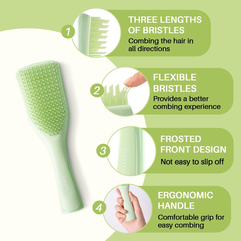 - 【Innovative Design】RHOS Detangler brush has over 300 highly flexible polyester fibre teeth.The Comb Teeth is softer and more flexible bristles than ordinary brushes.It won't tear or pull at tangled hair when detangling,reducing breakage and protecting the health of your hair more effectively.