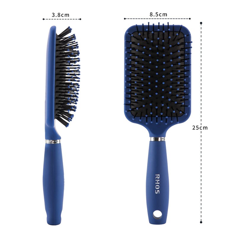 RHOS Paddle Hair Brush for Men-Detangler Hair Brush for Wet&Dry Hair-Square Cushion Hair Brush with Nylon Bristles for Detangling,styling-Plastic Hair Brush for Thin,Short,Think Hair(1 Pack-Blue)