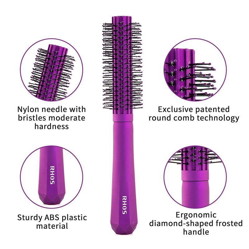 RHOS Round Brush for Blow Drying, Curling/Straightening - 1.5 inch Round Hair Brush for Bangs, Thin, Short, Curly Hair , Heat Resistant Hair Brush for Women and Men, Purple