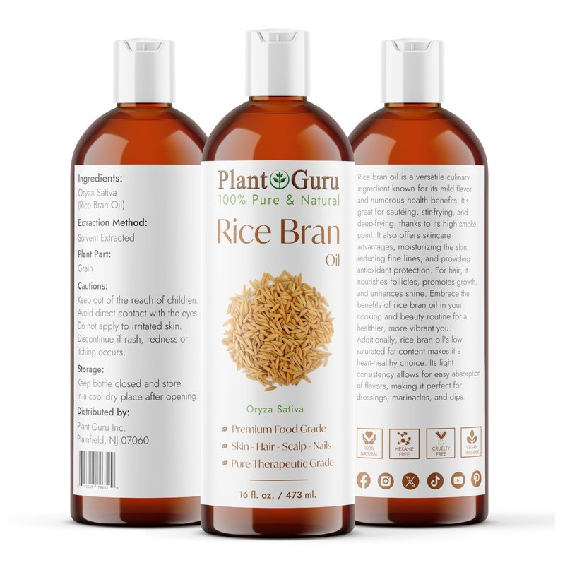 - 100% Pure Rice Bran Oil - Our rice bran oil is undiluted with no added ingredients. Tested for purity with every batch and safe for all skin types.