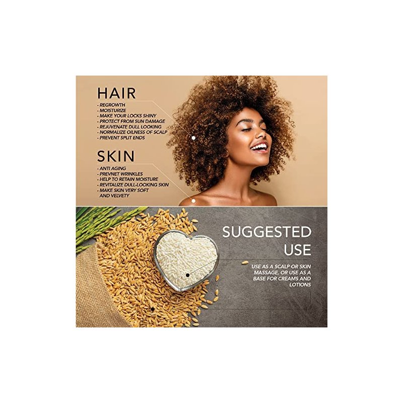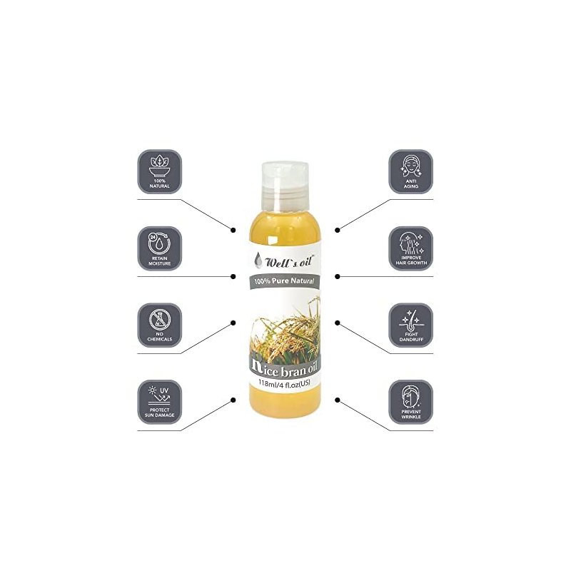 RICE BRAN OIL | 4oz(118ml) | All-Natural | For Hair + Skin + Nails | Vegan + Rice in Vit E | Refined, Cold Pressed | by Well’s Oil