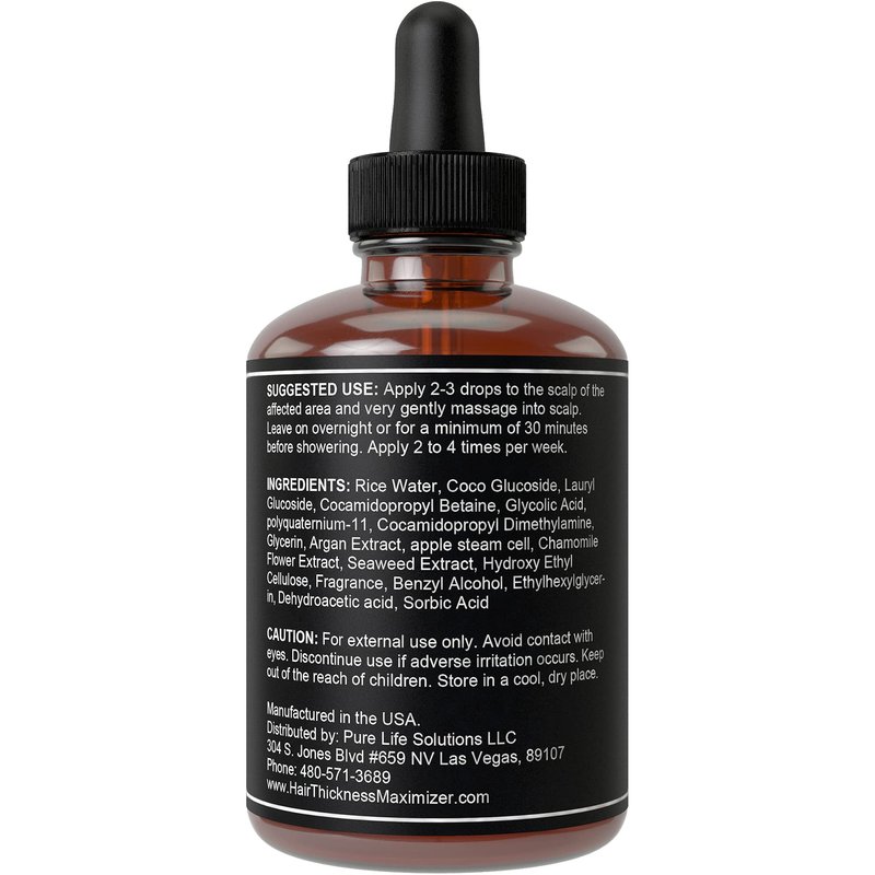 - What Makes Us Different? Unlike generic essential oils, Hair Thickness Maximizer’s Rice Water Serum for Hair Growth is specifically made for your hair growth in mind! We are a USA based brand that uses the highest quality hair ingredients with optimal concentration. This hair growth serum is combined with Rice Water, Argan Extract, Chamomile Flower Extract, Seaweed Extract and more!