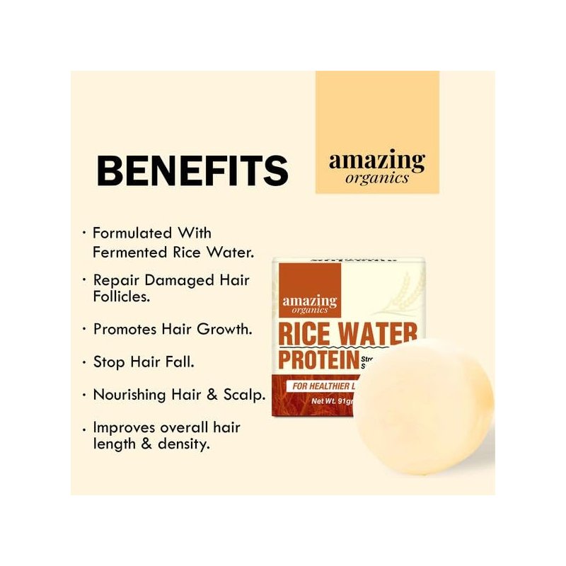 Introducing our Natural Rice Water Hair Growth Bar, a unique and eco-friendly approach to hair care. Infused with the goodness of rice water, this bar is designed to stimulate hair growth and strengthen your locks. Its nourishing formula, rich in vitamins and minerals, revitalizes your hair, leaving it soft, shiny, and healthy. An excellent alternative to traditional shampoos, our Rice Water Bar is suitable for all hair types and daily use. Embrace this sustainable, nutrient-packed solution for luscious, strong hair.