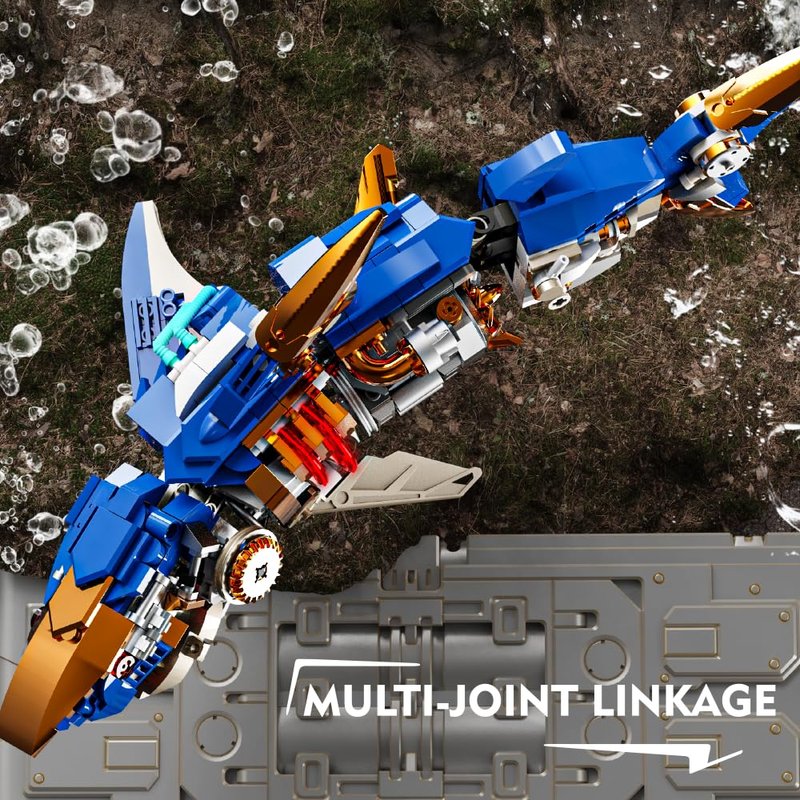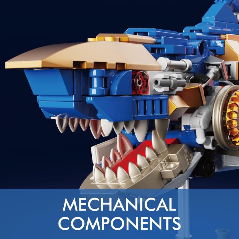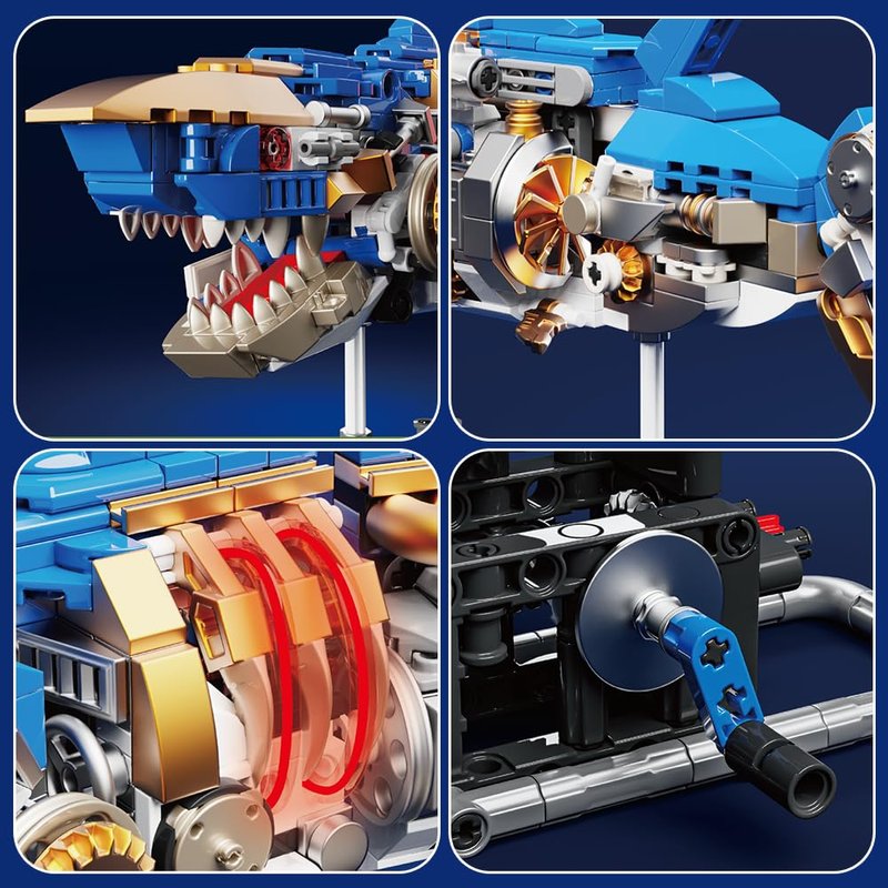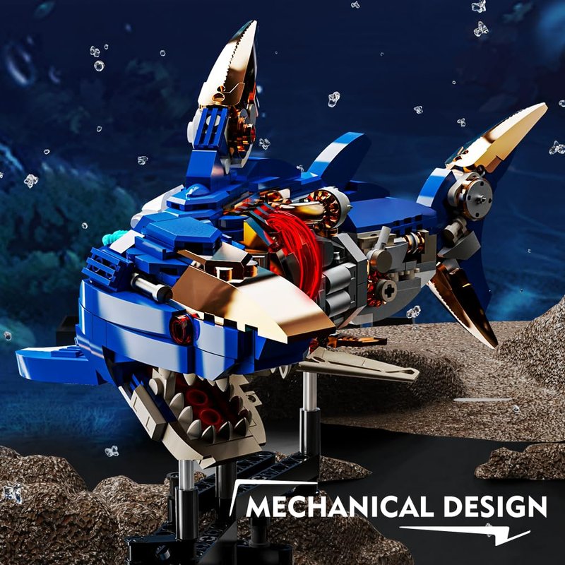 - Shark Sea Creatures Block Set (685 pieces): This marine animal block toy comes with 685 pieces, including a display stand and fluorescent lights. The clever mechanical design brings a sense of technology to the shark model!