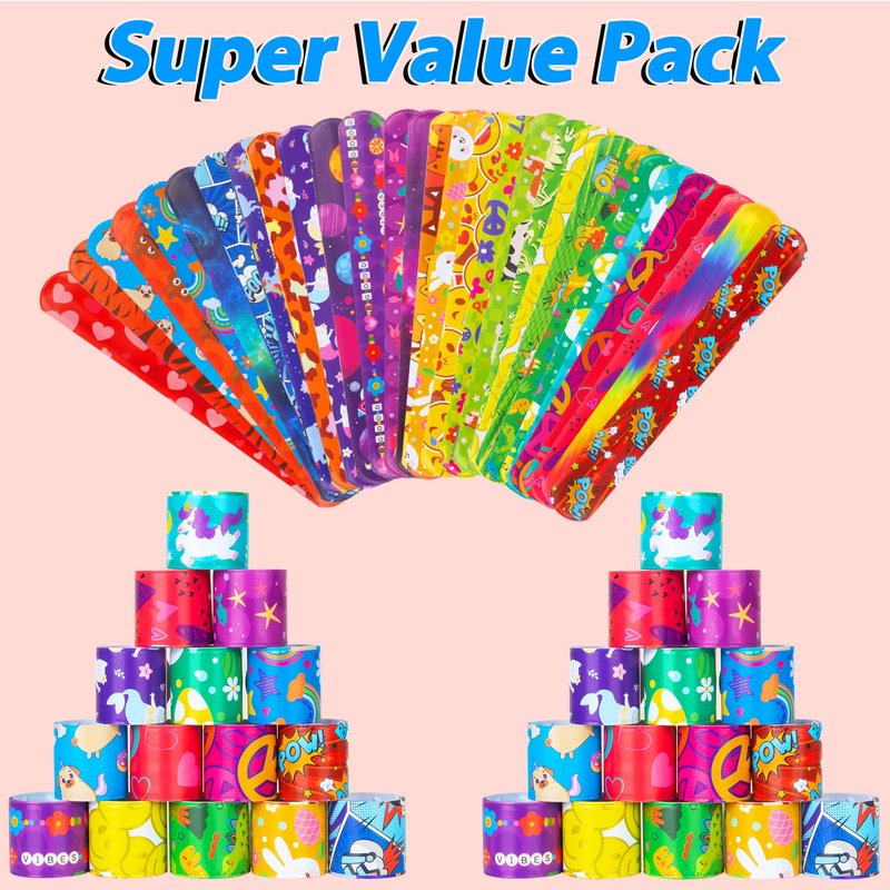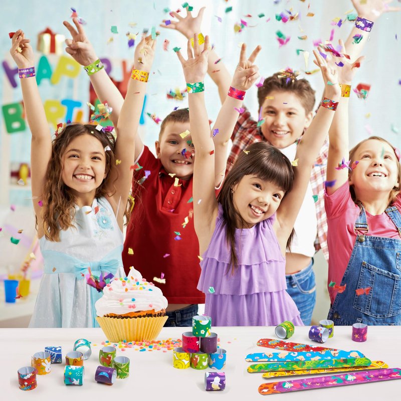 - Versatile and Multi-purpose: These high-quality slap wristbands are not just for parties but also suitable for kids' party favors, goodie bag fillers, class rewards, office parties, Valentine's Day exchanges, crafting tables, or themed parties. A must-have for any occasion!