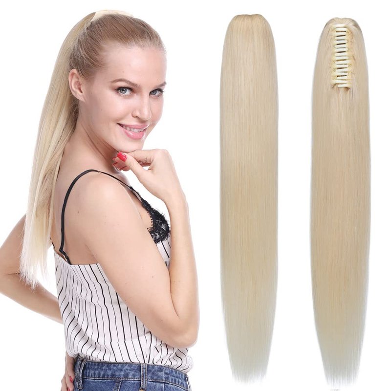 Rich Choices Claw Clip Ponytail Extension Human Hair 18 Inch Real Hair Ponytail Extension Balayage #60 Platinum Blonde 115g One Piece Clip In Long Ponytail Hair Extensions Straight For Women