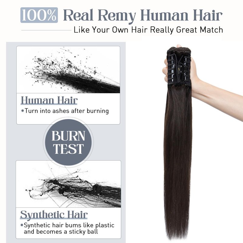 - ❤ The strong claw clip on human hair ponytail is very easy to wear and remove, and you don't have to worry about it falling off during daily activities. It blends perfectly with your hair, adding length, volume, and a style change effortlessly. Just take it easy when using it and you will have a new look!