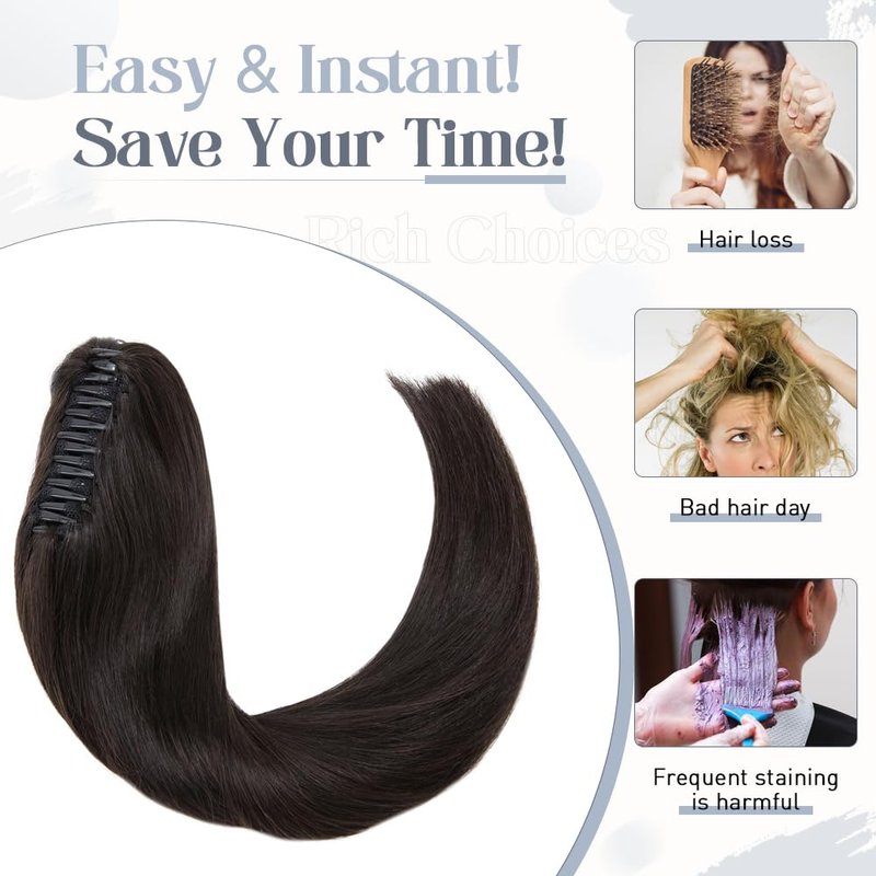 - Style: claw clip on human hair ponytail