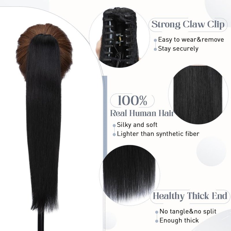 - Style: claw clip on human hair ponytail