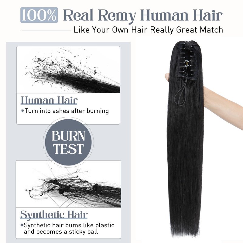 - ❤ The strong claw clip on human hair ponytail is very easy to wear and remove, and you don't have to worry about it falling off during daily activities. It blends perfectly with your hair, adding length, volume, and a style change effortlessly. Just take it easy when using it and you will have a new look!