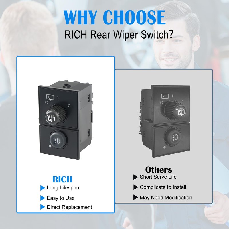 - 【Easy to Install】 This rear wiper switch fog lamp switch is a direct replacement, 100% tested before shipment. It is easy to install, you just need take out the old switch and insert the new one, you can complete the replacement in 15 minutes.