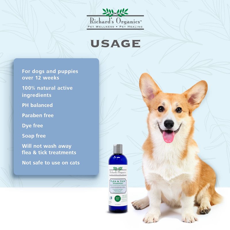 - FAST ACTING – You will see fleas coming off your dog as you bathe with Richard’s Organics Flea and Tick Shampoo. Ticks let go and are more easily removed from the skin. For best results, work the lather thoroughly into the dog’s coat and down into the skin, moving back from the head. Allow lather to remain on the dog for a few minutes and then rinse. The essential oils are calming, and your dog will smell great.