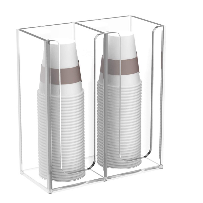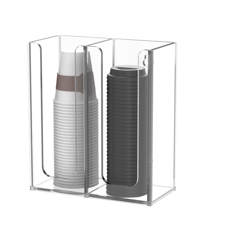 Richboom Acrylic Coffee Cup and Lid Storage Organizer Holder, 2 Compartments, Clear