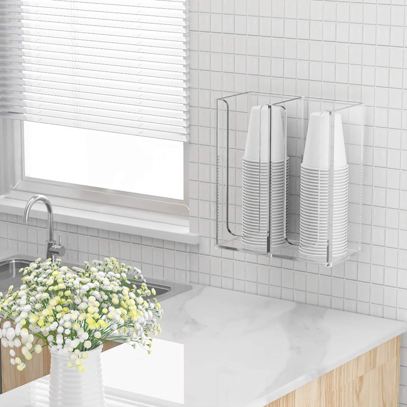 - Professional design - provides 4 pre-drilled holes on the back of the cup dispenser, it can be placed on countertops or wall mounted for optional, comes with non-slip feet for the cup holder, prevent it from sliding or scratching when it on the desk, table top, counter