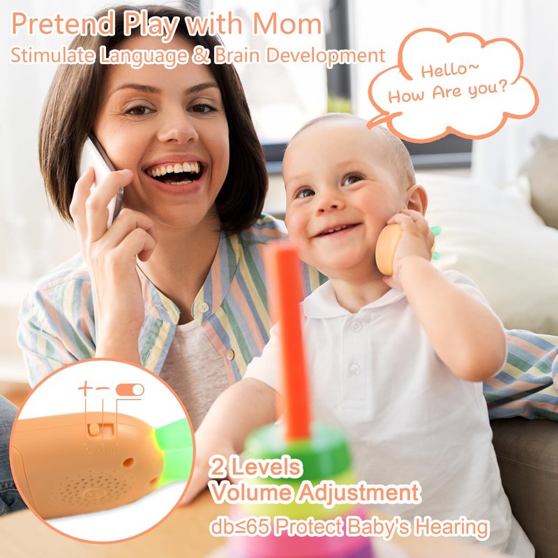 - Right Size&Volume Adjustable: Richgv toy phone is built for little hands and is the perfect size for easy on the go entertainment for baby. The gentle sound is less than 65 dB, with two-level volume control, the sounds are soft even on the highest level, it will not annoy you at all and baby could play with it in public