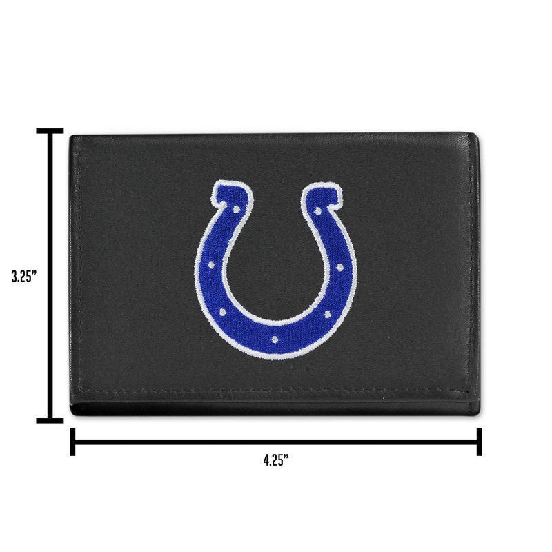 - Choose from embossed, embroidered, or laser-engraved wallets all available in billfold or trifold style, perfect for a treat yourself gift, or for gifting to the sports fan in your life. Rico Industries Embroidered Leather Trifold Wallets feature a beautifully stitched team logo. Trifold design measures 3.25" x 4" and includes four credit card slots, cash pocket and a license slot. Your day won't feel complete without this piece of team adoration in your pocket