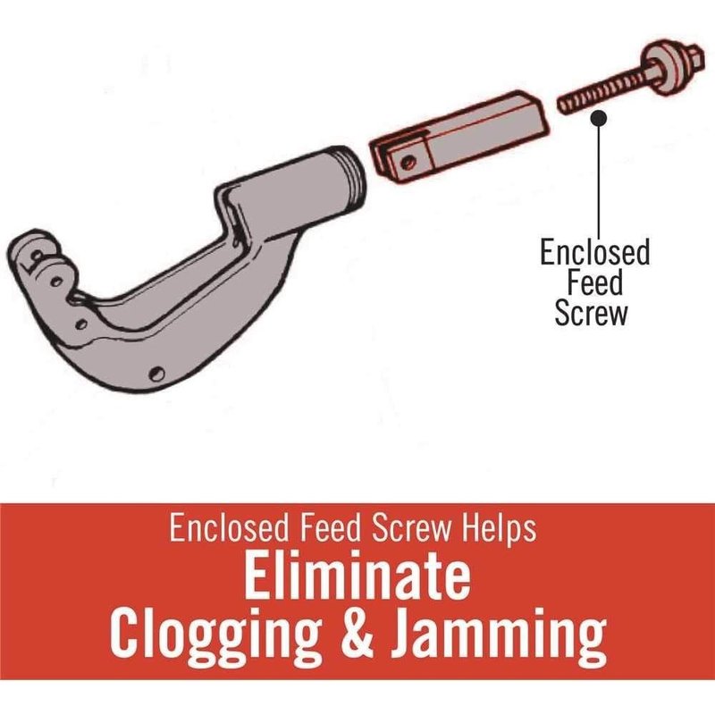 - Designed with an enclosed feed screw to eliminate clogging and jamming, grooved rollers for close-to-flare cuts, and a fold-away reamer