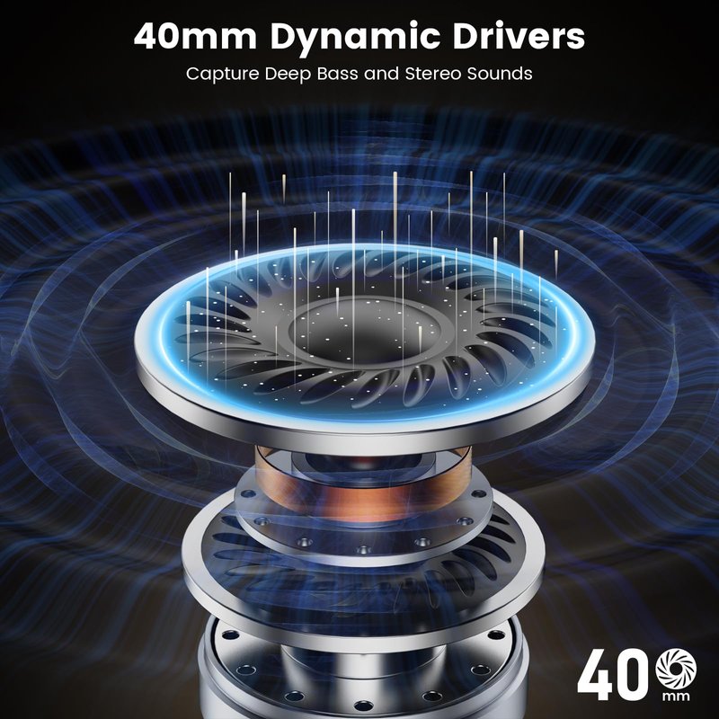 - [40mm Drivers For Immersive Sound]:Featuring 40mm drivers that produce clear, balanced sound with a frequency response of up to 40kHz, you can be sure to hear every detail from the deepest bass to the highest treble
