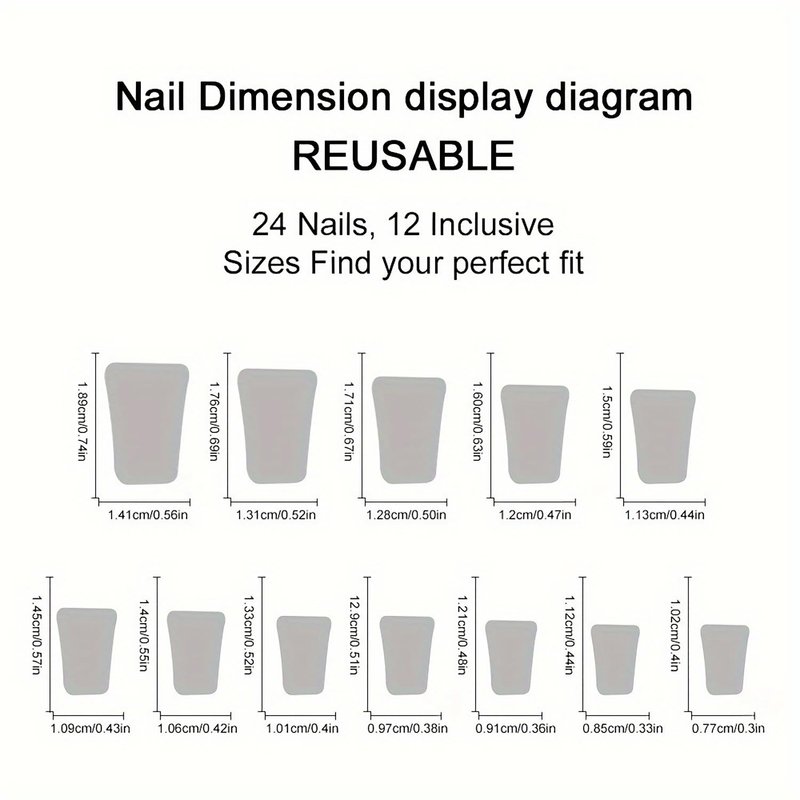 - Tips for Using: You can use the nail glue stickers we give away (use nail glue stickers, fake nails can be reused), but nail glue stickers are not as good as liquid glue, if you want more lasting, please use nail glue, the effect can last for 1 week.