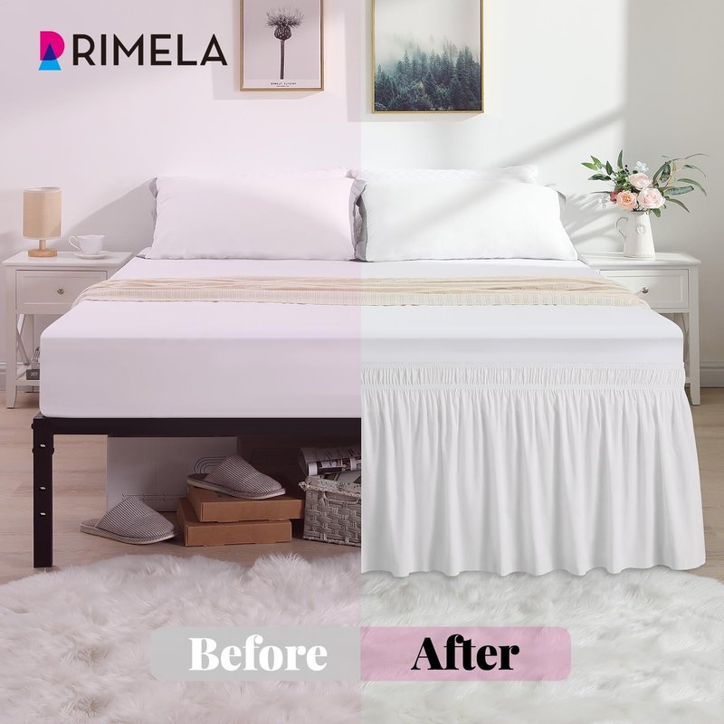 - 🌸【Super Easy On/Off】 Rimela new style bed skirt has two wrap around elastic bands that easily wraps around your mattress and platform. No more struggling to lift a heavy mattress, enjoy your new ruffle bed skirt in 3 mins!