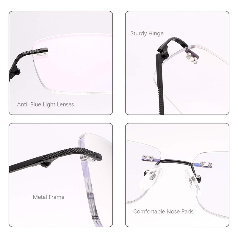 Rimless Clear Bifocal Reading Glasses Blue Light Blocking Readers for Men and Women Unisex Eyewear Far Near Dual-Use Lightweight Magnifying Anti Glare UV Digital Reduce Eyestrain Fashion Eyeglasses