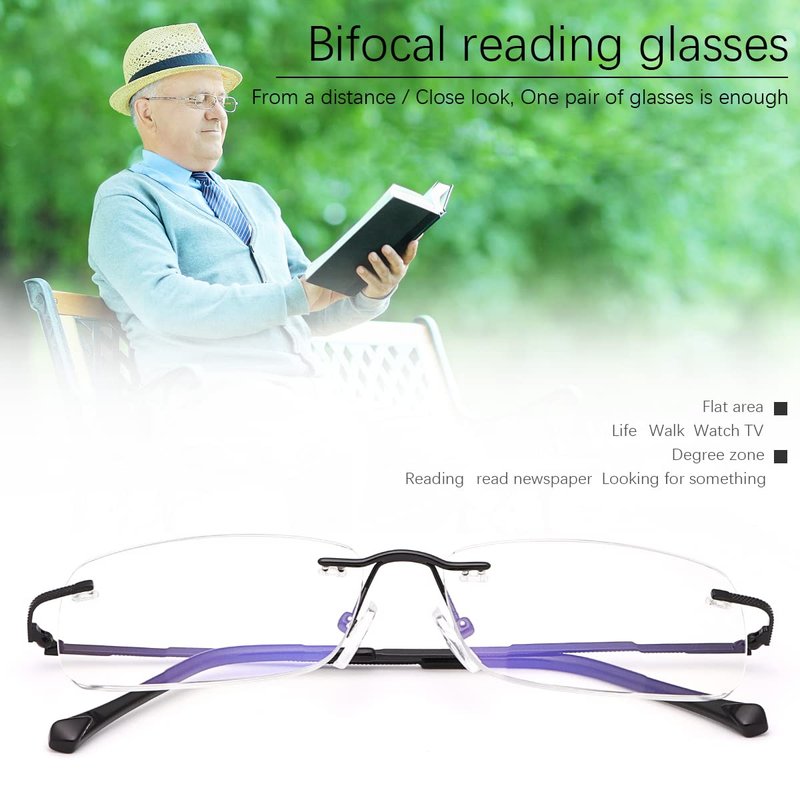 - ✿Rimless Bifocal Reading Glasses - The top part of the lens is clear, while the bottom section is available in your choice of magnification for reading your favorite book, newspaper, or magazine,jobs. (available magnification strength: 1.00, 1.50, 2.00, 2.50, 3.00, 3.50, 4.00) lightweight, durable and stylish rimless bifocal clear reading glasses,perfect for reading near and far or working on your computer.