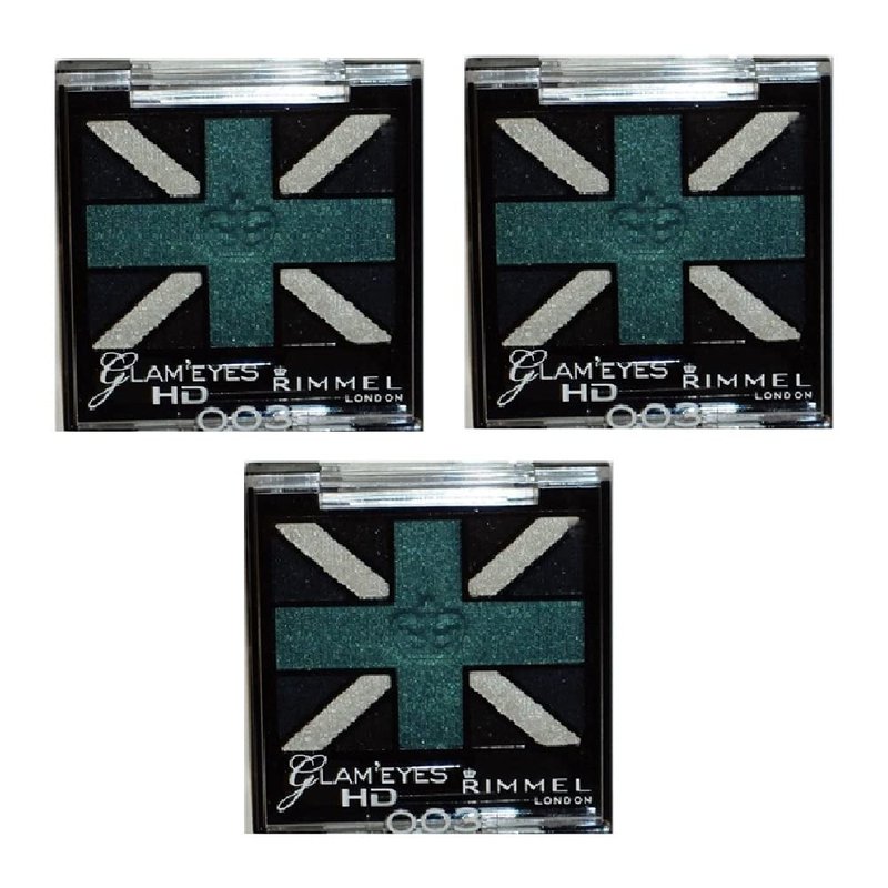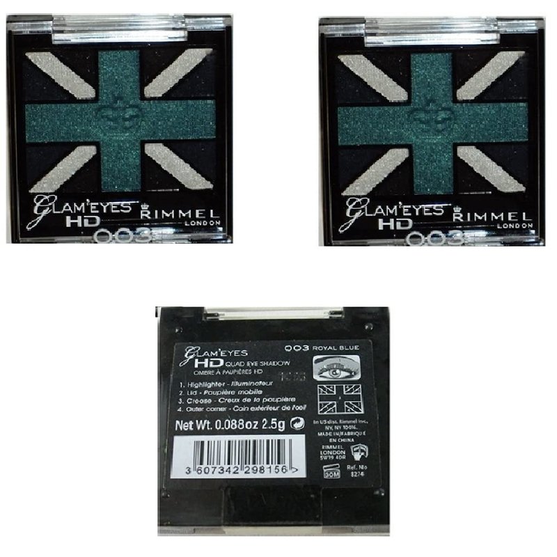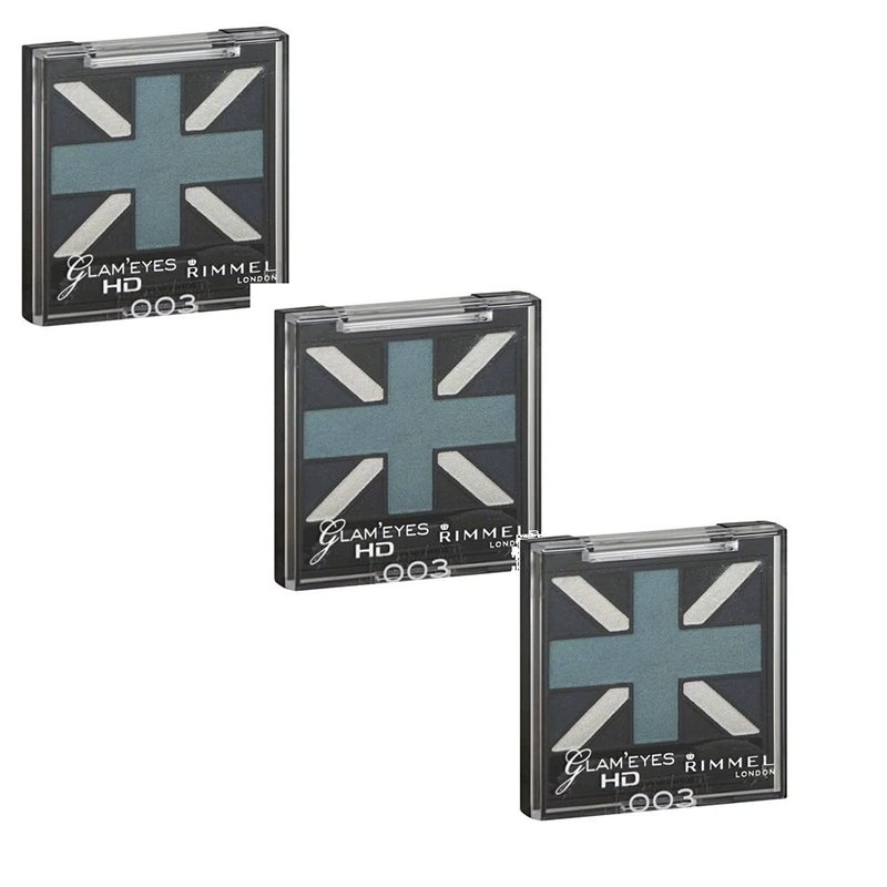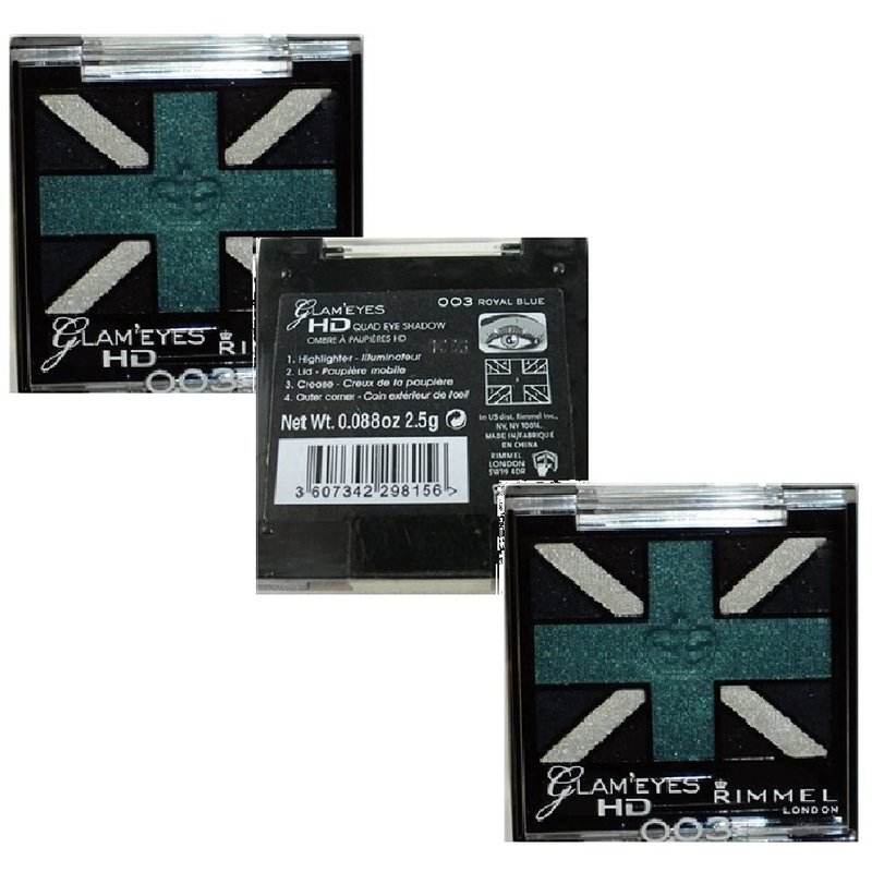 Rimmel Pack of 3 London Glam Eyes HD Quad Eye Shadow, Royal Blue 003