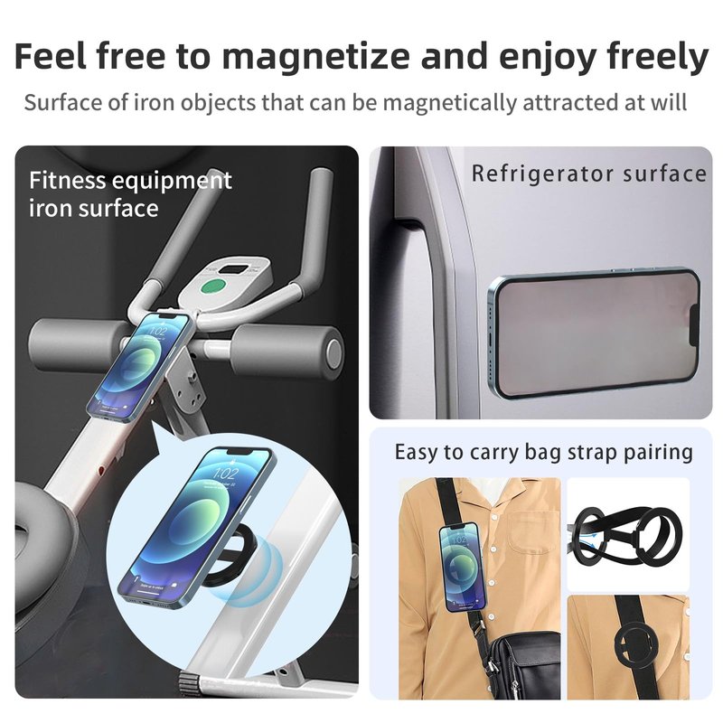 - 【Dual-Sided Magnetic】Our magsafe phone ring grip features a unique double-sided magnetic design, allowing it to adhere directly to any metal surface, such as fitness stands, refrigerators, or magnetic car mounts. It can also be attached to non-metallic smooth surfaces by using the metal ring