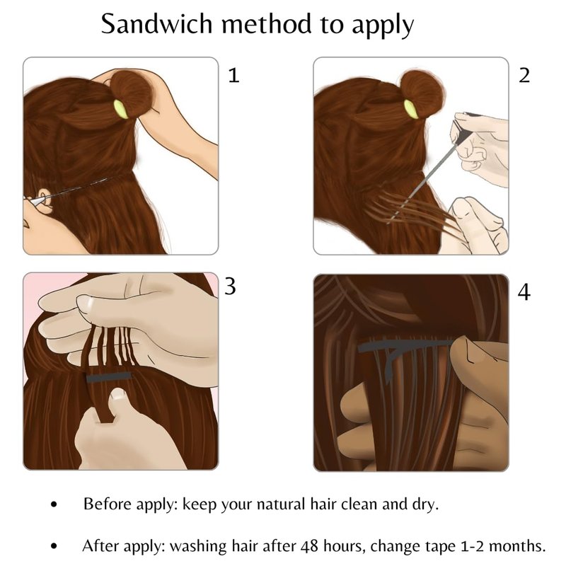 Tape-in hair extensions are the perfect solution for add length and volume, they will not damage your own natural hair once installed. RINBOOOL Remy tape in hair extensions can be last you anywhere from 6 to 12 weeks, or until your natural hair grows out. You can be removed and reapplied with new replacement tape.