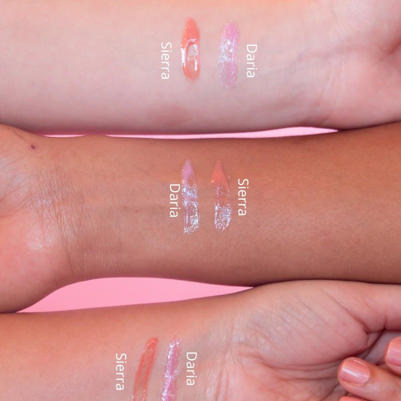 This ultra hydrating sheer gloss duo with flecks of shimmer is perfect for the lip-gloss lover. Includes shades Daria (sheer shimmery baby pink) and Sierra (sheer shimmery peach). Both provide hydration to your lips with skin care ingredients: Sunflower Seed Oil, Shea Butter, Jojoba Seed Oil, Aloe, Chamomile Extract, and Grapefruit Seed Extract. You will notice your lips will be hydrated throughout the day for subtle plump looking lips.