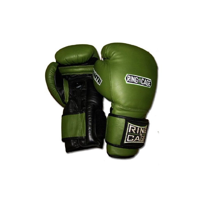 Ring to Cage 20oz, 22oz, 24oz Deluxe MiM-Foam Sparring Gloves - Safety Strap Boxing Training Gloves, for Boxing, MMA, Muay Thai, Kickboxing (14oz, Marine Green/Black)