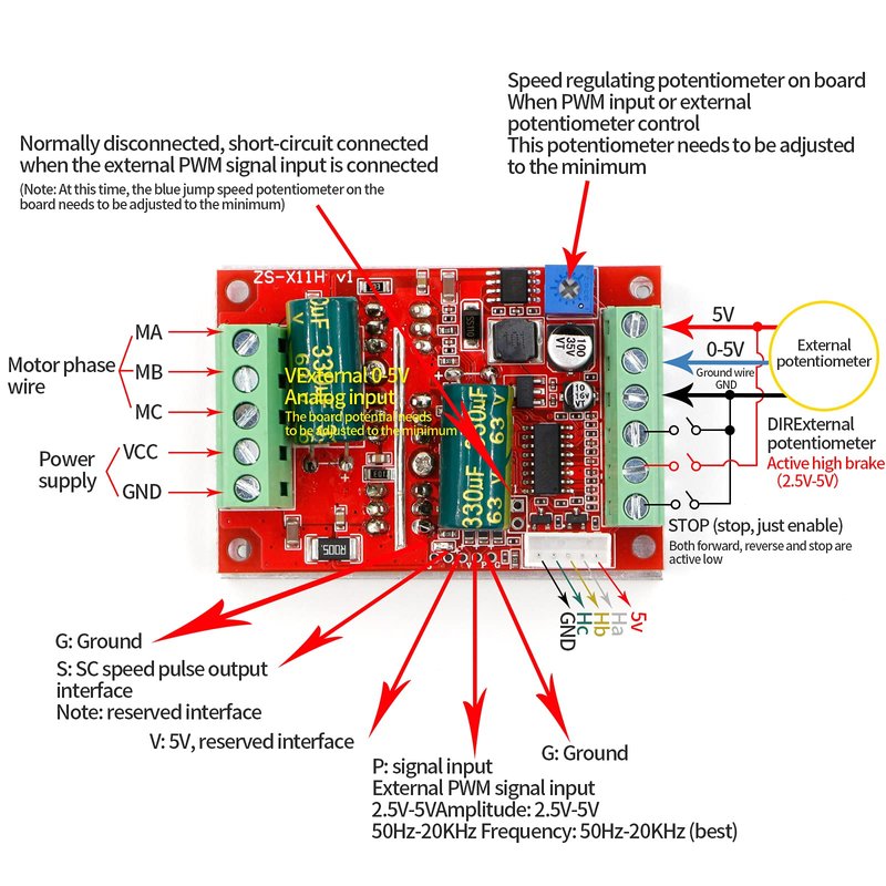 - New upgrade BLDC wide voltage 6-60V high power 350W, DC three-phase brushless with Hall controller, support PLC 0-5V touch volume control, support PWM control amplitude 2.5-5V.