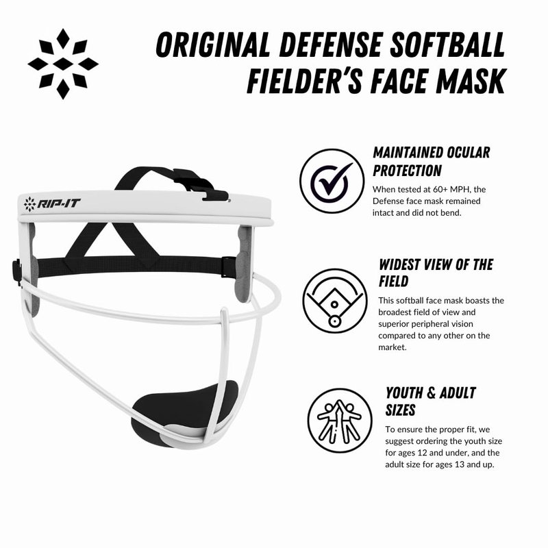 - Durable and Lightweight: Crafted with durable steel bars, the RIP-IT Original Defense Softball Fielder's Mask is built to withstand the demands of the game. Despite its strength, it remains impressively lightweight for optimal performance.