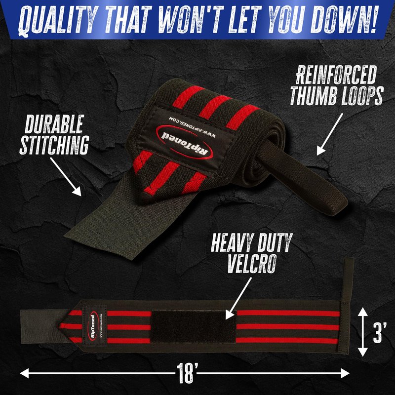 Rip Toned 18” Wrist Wraps - Wrist Straps for Weightlifting - Lift Better, Protect Wrist Pain - Adjustable, Durable, Machine Washable - Wrist Brace for Weightlifting - USPA Endorsed for Men & Women