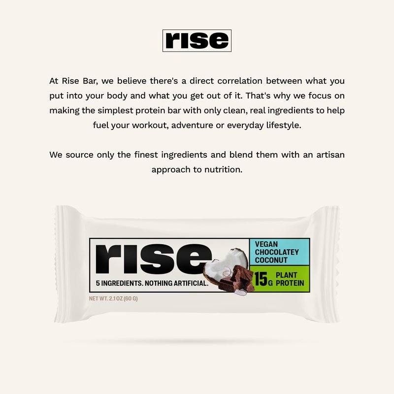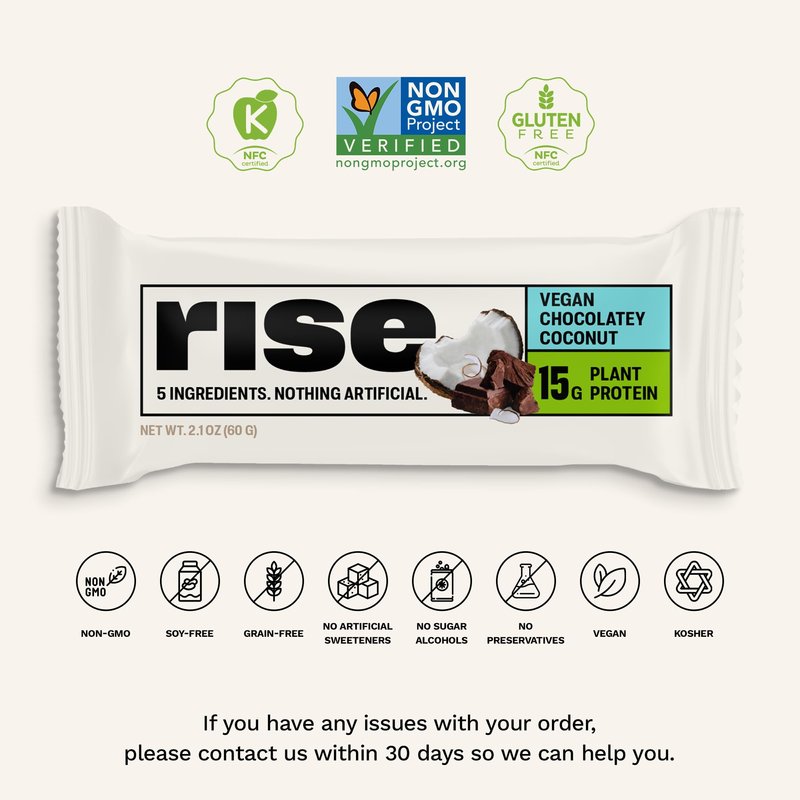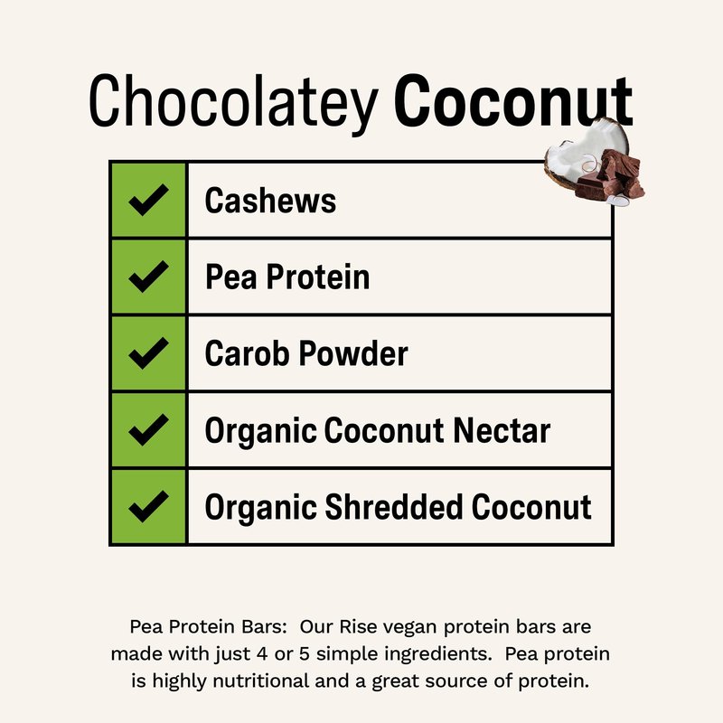 Rise Pea Protein Bar - Chocolately Coconut | Breakfast Bar & Protein Snack 15g Protein Just 5 Whole Food Ingredients Non-GMO Gluten-Free Soy Free